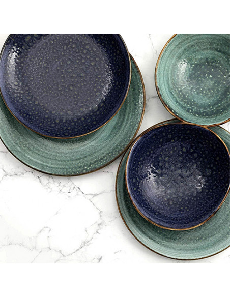 MOON offers two colors: blue and turquoise, and its success lies in the originality of its complementary pieces. This collection features a soft design with natural textures and finishes, adding a vibrant touch of color to your table.
