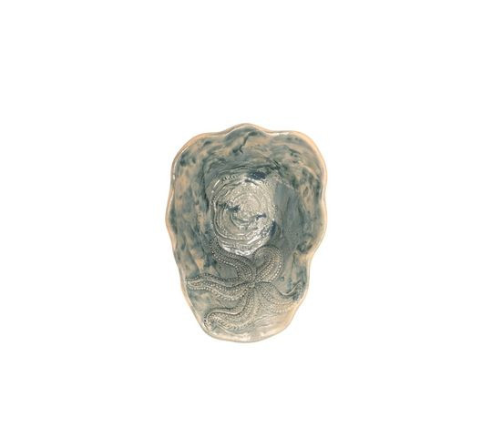 MAR, como su nombre indica, está inspirada en el mar y en los fascinantes animales ancestrales que lo habitan. Esta colección de gres, pintada a mano, presenta en cada plato la figura de un animal distinto. Su acabado combina un fondo mate con una aplicación aleatoria de esmalte vítreo. La colección está disponible en tres colores: arena, azul y verde.