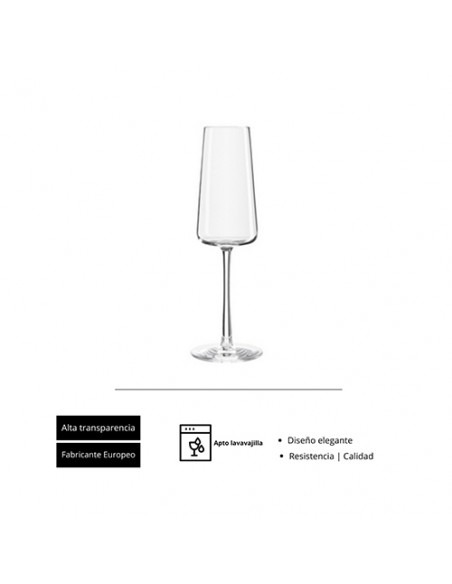 Diseñada para maximizar el sabor y el aroma del vino. De corte moderno, sigue las últimas tendencias en el tipo de cáliz plano. La colección dispone de dos vasos que reproducen el cáliz de las copas y suponen un complemento elegante. Fabricada en vidrio cristalino. Borde fino.