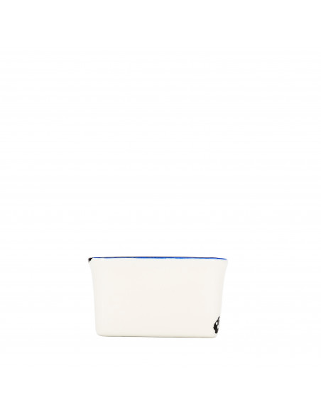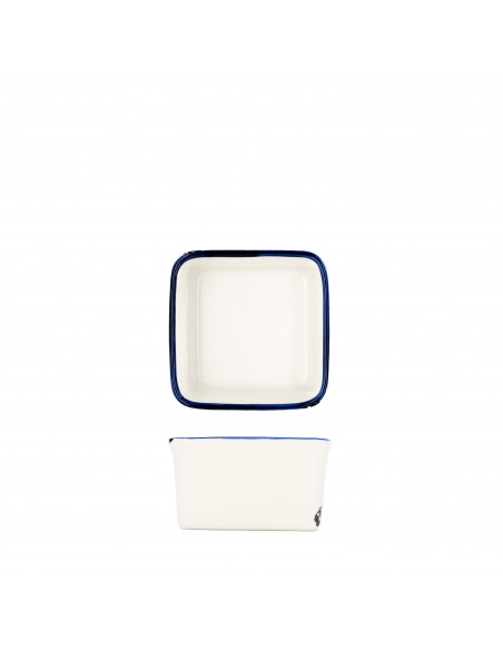 ALACENA AZUL es una colección muy particular y original. Realizada en porcelana de color blanco marfil con detalles en azul, evoca las antiguas vajillas de hierro esmaltado, reproduciendo incluso los característicos desportillados que aparecían con el uso cuando el esmalte se golpeaba y se iba desgastando.
